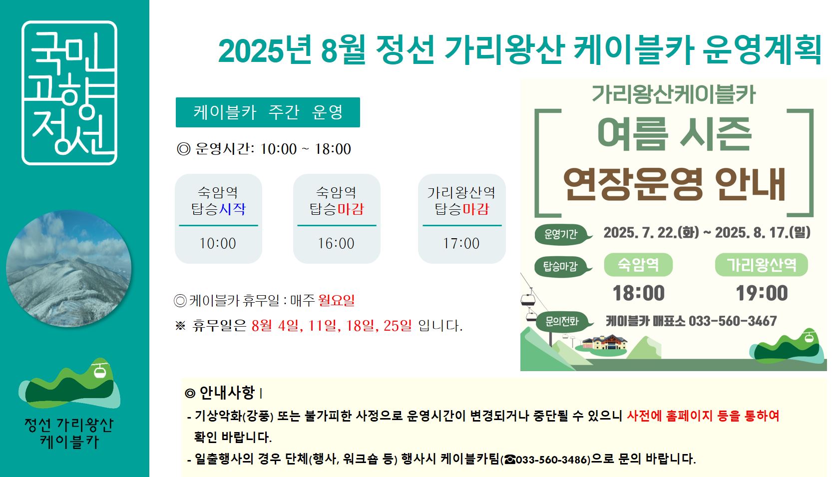 2025³â 8¿ù Á¤¼± °¡¸®¿Õ»ê ÄÉÀ̺íÄ« ¿î¿µ°èȹ | |||